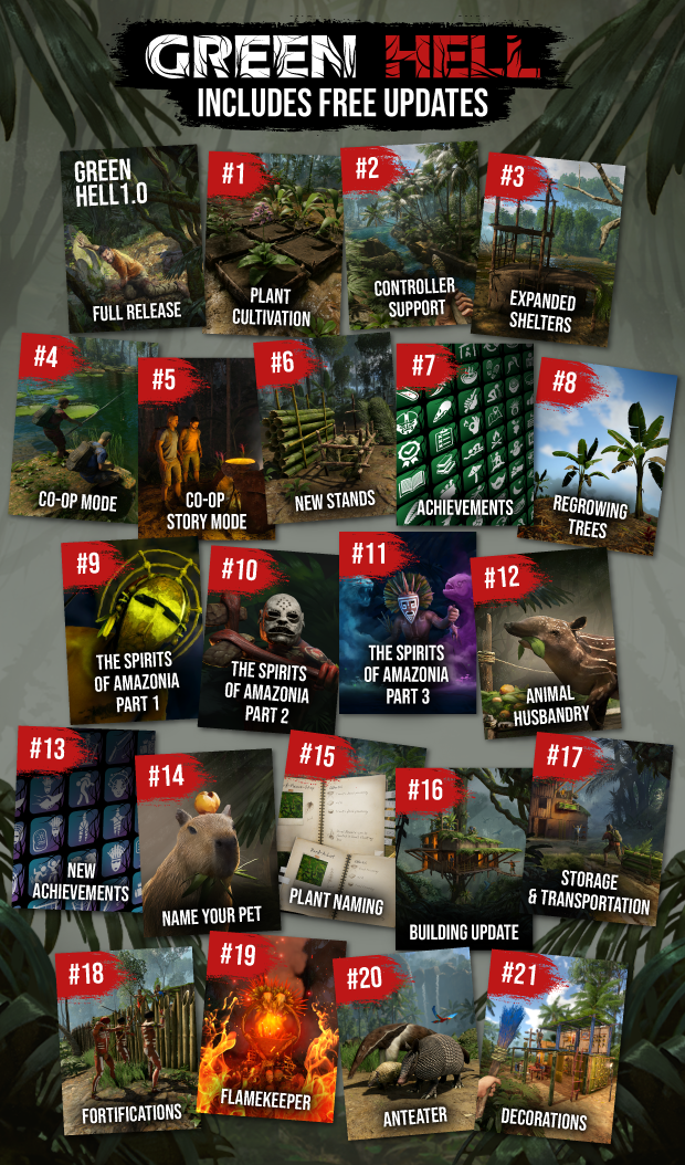 Ana senaryonun öncesinde geçen ve 20 saatin üzerinde oynanış vadeden ücretsiz Spirits of Amazonia hikâyesini de keşfe çık. İlk Green Hell'in hikâyesine yol açan olayları açığa çıkar ve ormana musallat olmuş gizemi çöz.
